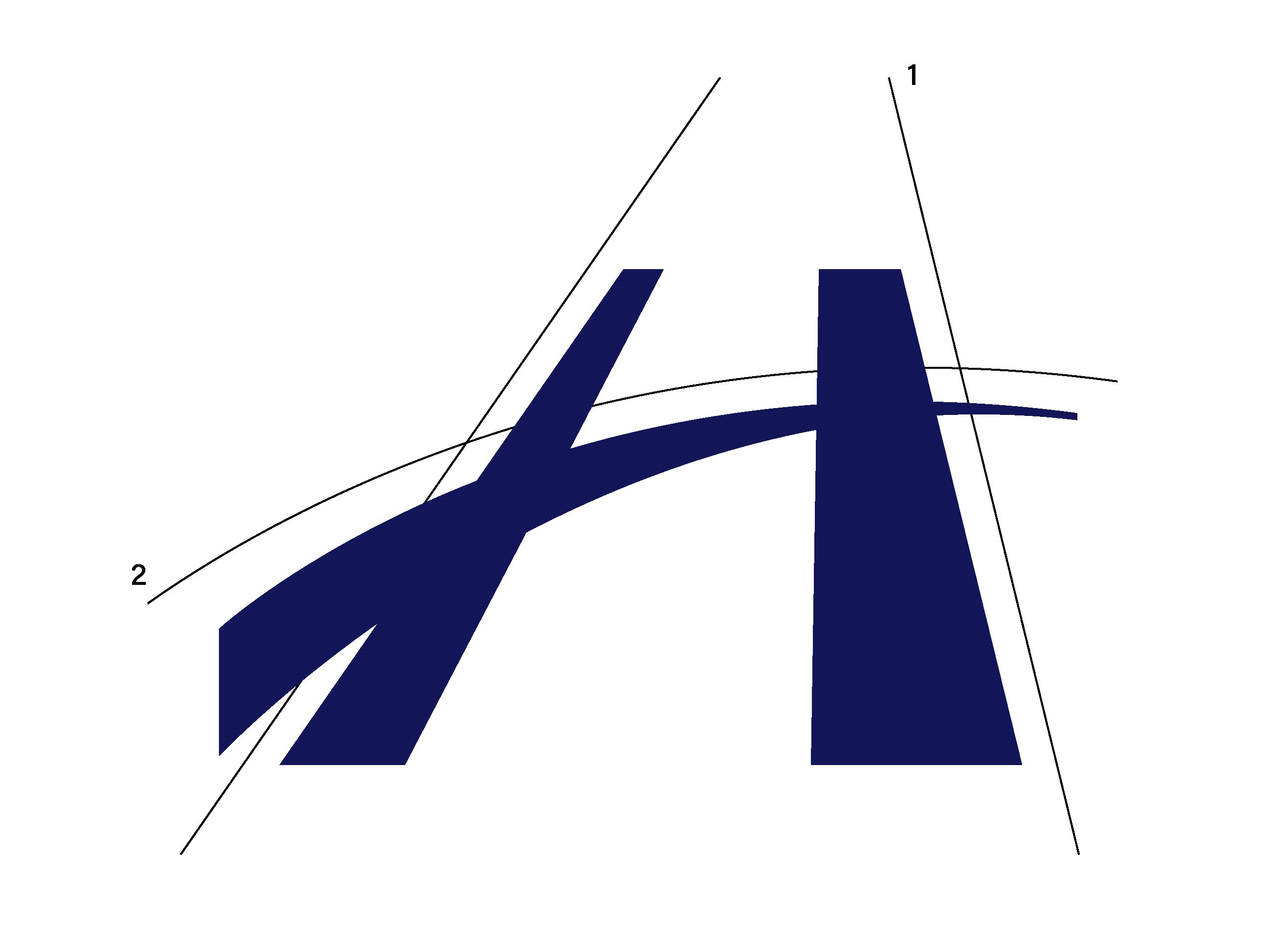 1 : 縦のラインの直線は、 共通の未来に向かって伸びていく滑走路であり、 人へのひたむきなまなざし。