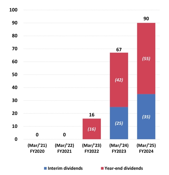 | Dividends per share (yen) | 0 | 0 | 16 | 67 | 90 |