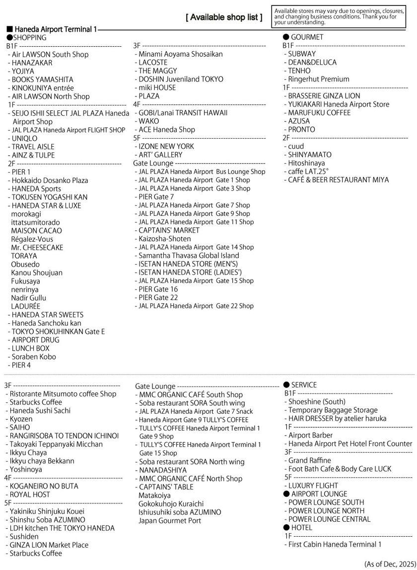 Stores at Haneda Airport