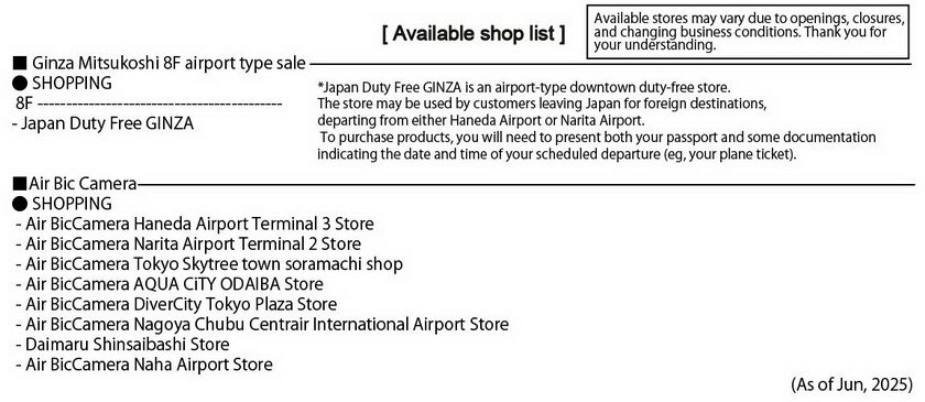 Japan Duty Free GINZA, etc.