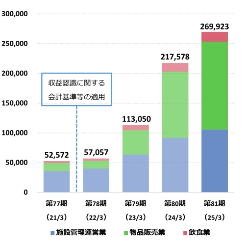 | 営業収益(百万円) | 52,572 | 57,057 | 113,050 | 217,578 | 269,923 |