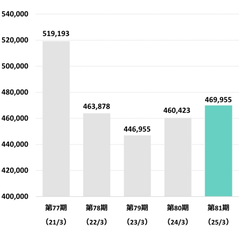 | 総資産(百万円) | 519,193 | 463,878 | 446,955 | 460,423 | 469,955 |