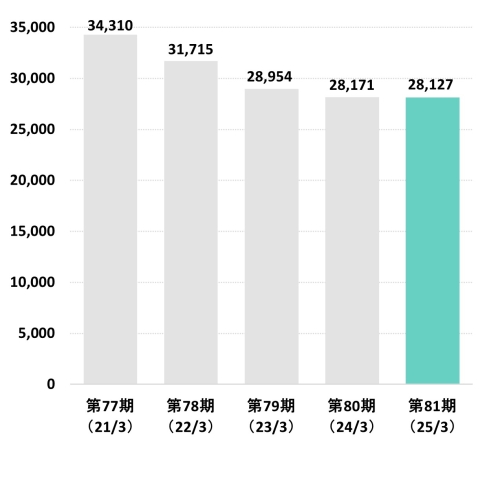 減価償却額(百万円) 34,310 31,715 28,954 28,171 28,127