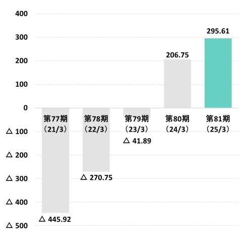 1株当たり当期純利益(円) △445.92 △270.75 △41.89 206.75 295.61