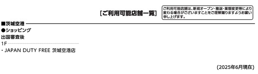 茨城空港でのご利用可能店舗
