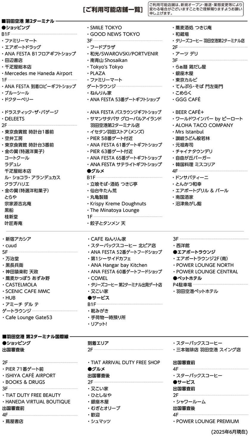羽田空港でのご利用可能店舗