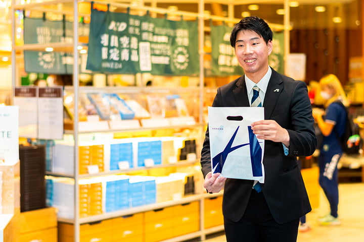 食品・雑貨を中心に厳選された話題の商品が並ぶ国内線売店、海外の一流ブランド品を多数取り揃える免税店舗を展開して、お客さまのニーズにお応えし、満足を超えた上質なサービスを提供します。